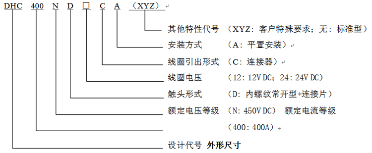 陶瓷密封系列高壓直流接觸器DHC400產品型號釋義